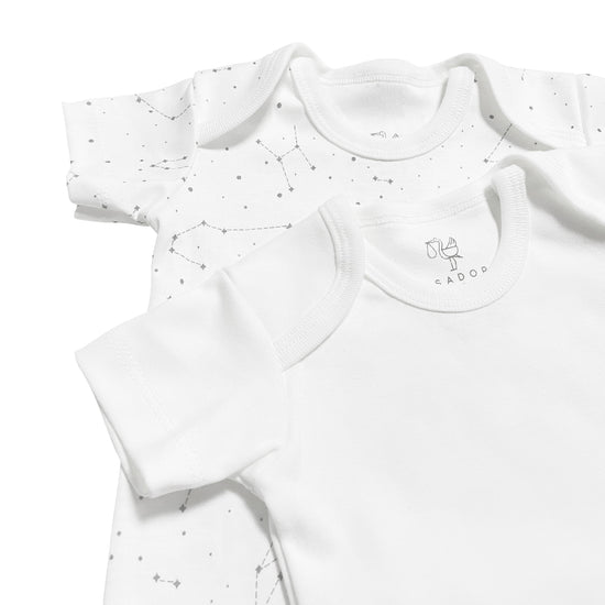 Die Kurzarm-Bodys von Casadora Baby sind das ganze Jahr über bequem zu tragen. Dank des Druckknopf-Designs sind sie praktisch und schnell zu verwenden, sodass Sie die Windel Ihres Babys problemlos wechseln können.