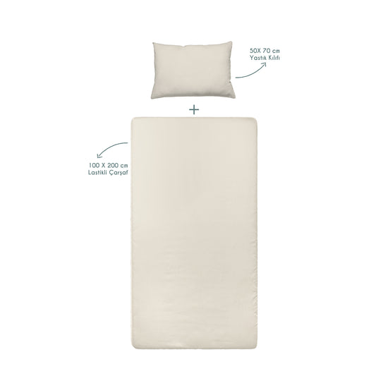 %100 Organik Pamuk Bej Saten Fitted Çarşaf Seti - 70x140x20+35x45