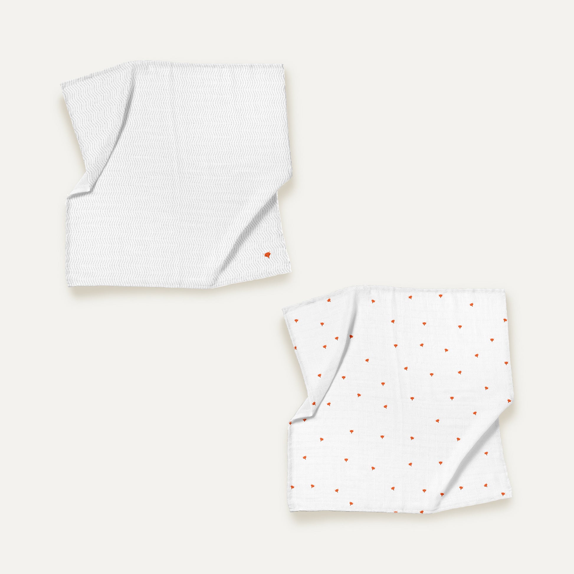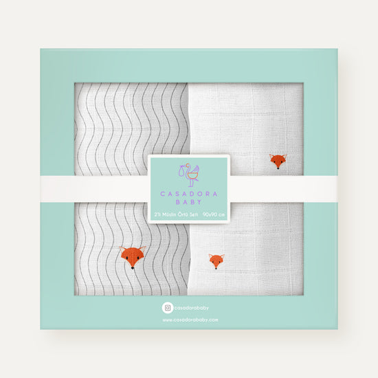 Cool Fox Embroidered 100% Organic Cotton Muslin Blanket Set (90x90 cm, 2-piece)