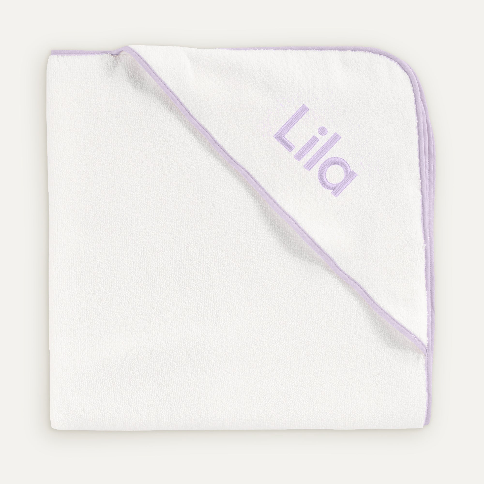 İsme Özel Nakışlı Lila Biyeli %100 Organik Pamuk Bebek Havlu Kundak 80 x 80 cm