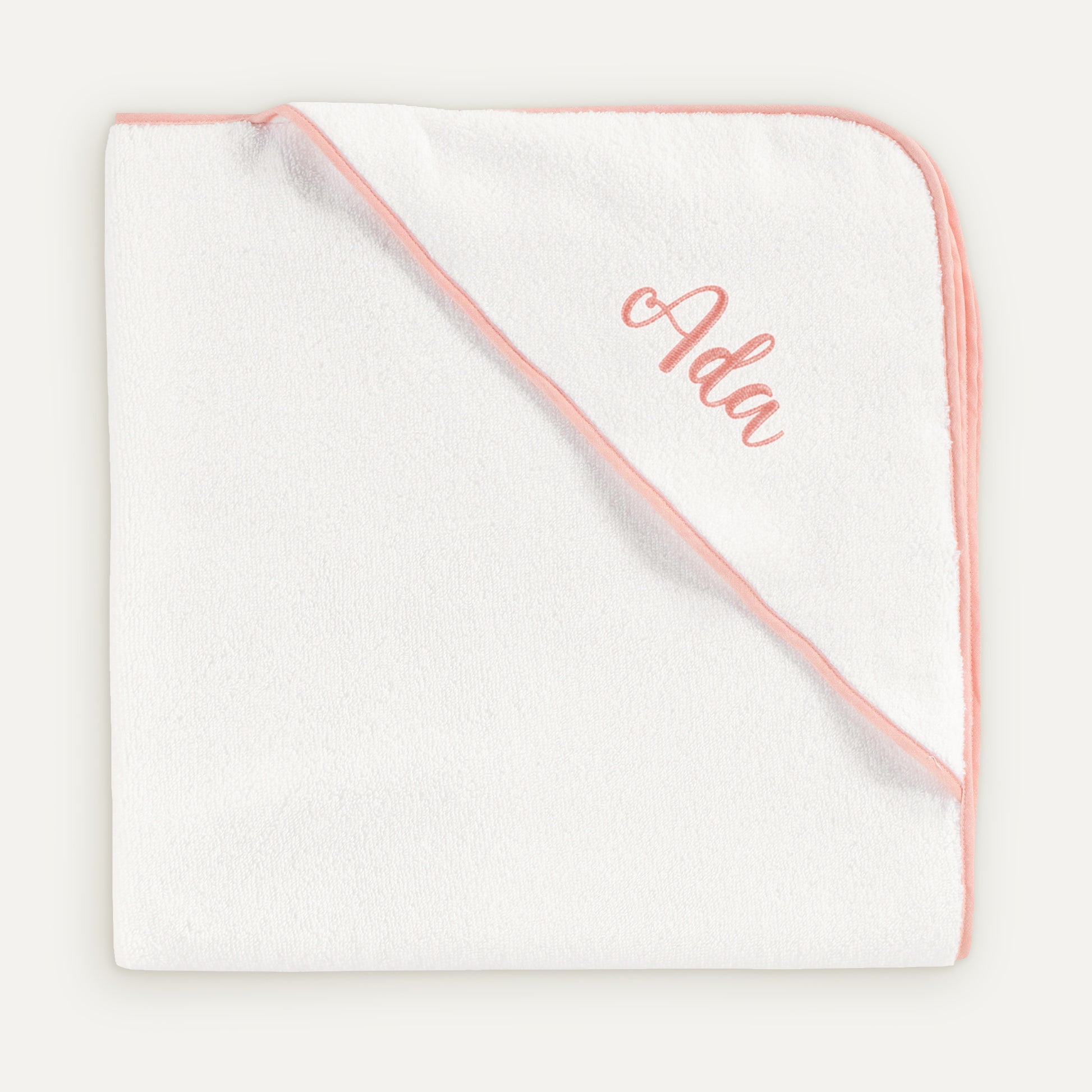 İsme Özel %100 Organik Pamuk Nakışlı Somon Biyeli Bebek Havlu Kundak