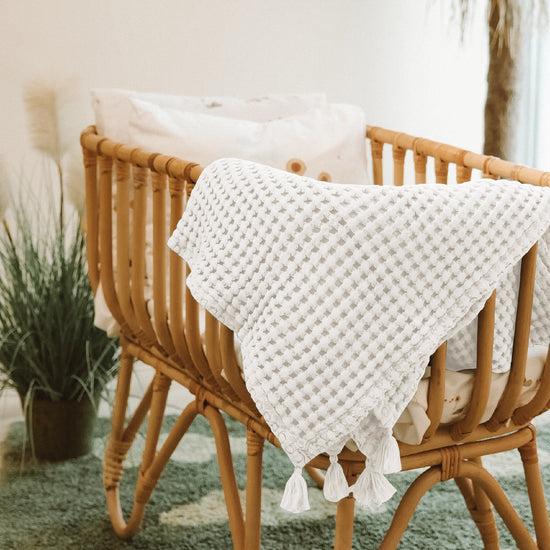 %100 Organik Pamuk Waffle Bebek Pike Örtü Beyaz