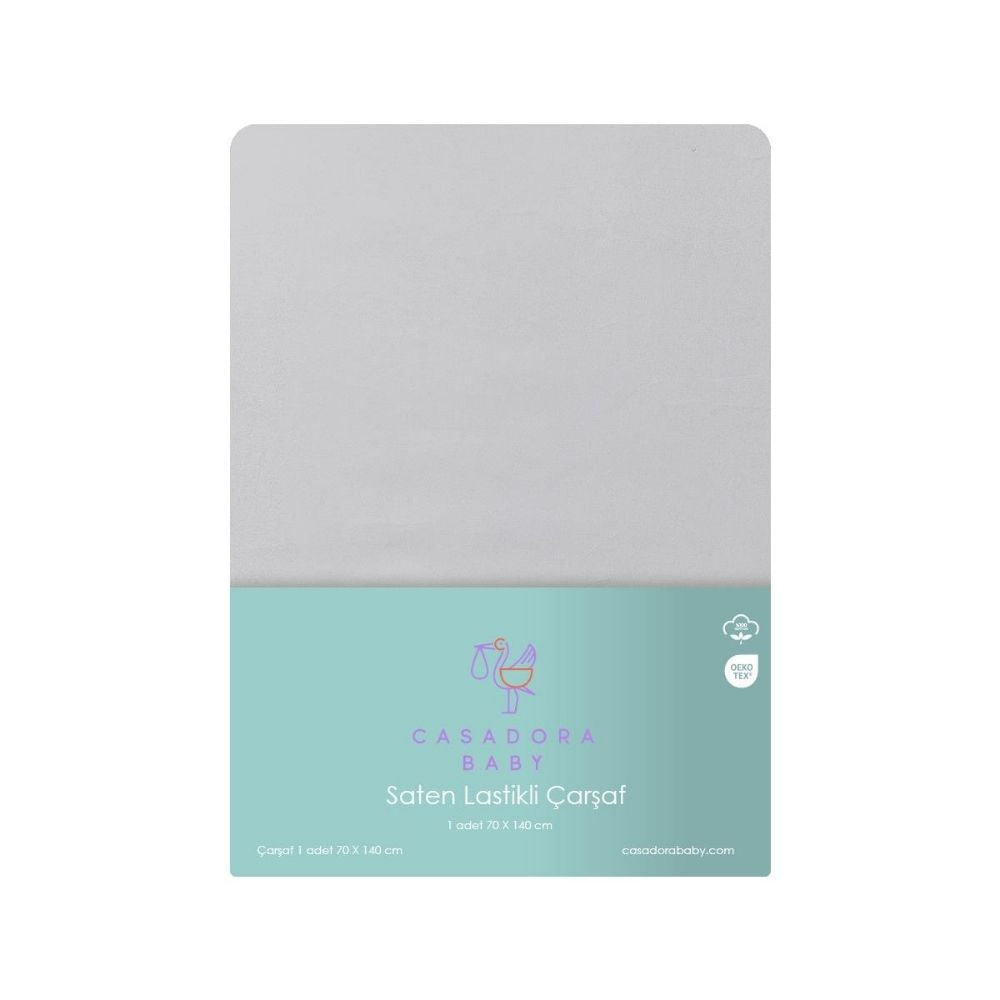 %100 Organik Pamuk Saten Lastikli Bebek Çarşafı Gri