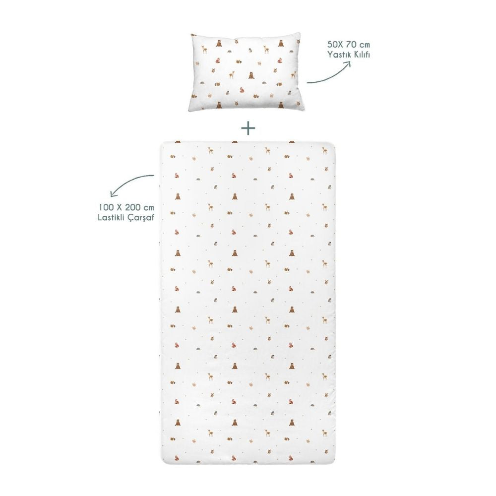 Forest Amigos %100 Organik Pamuk Saten Bebek Lastikli Çarşaf Seti