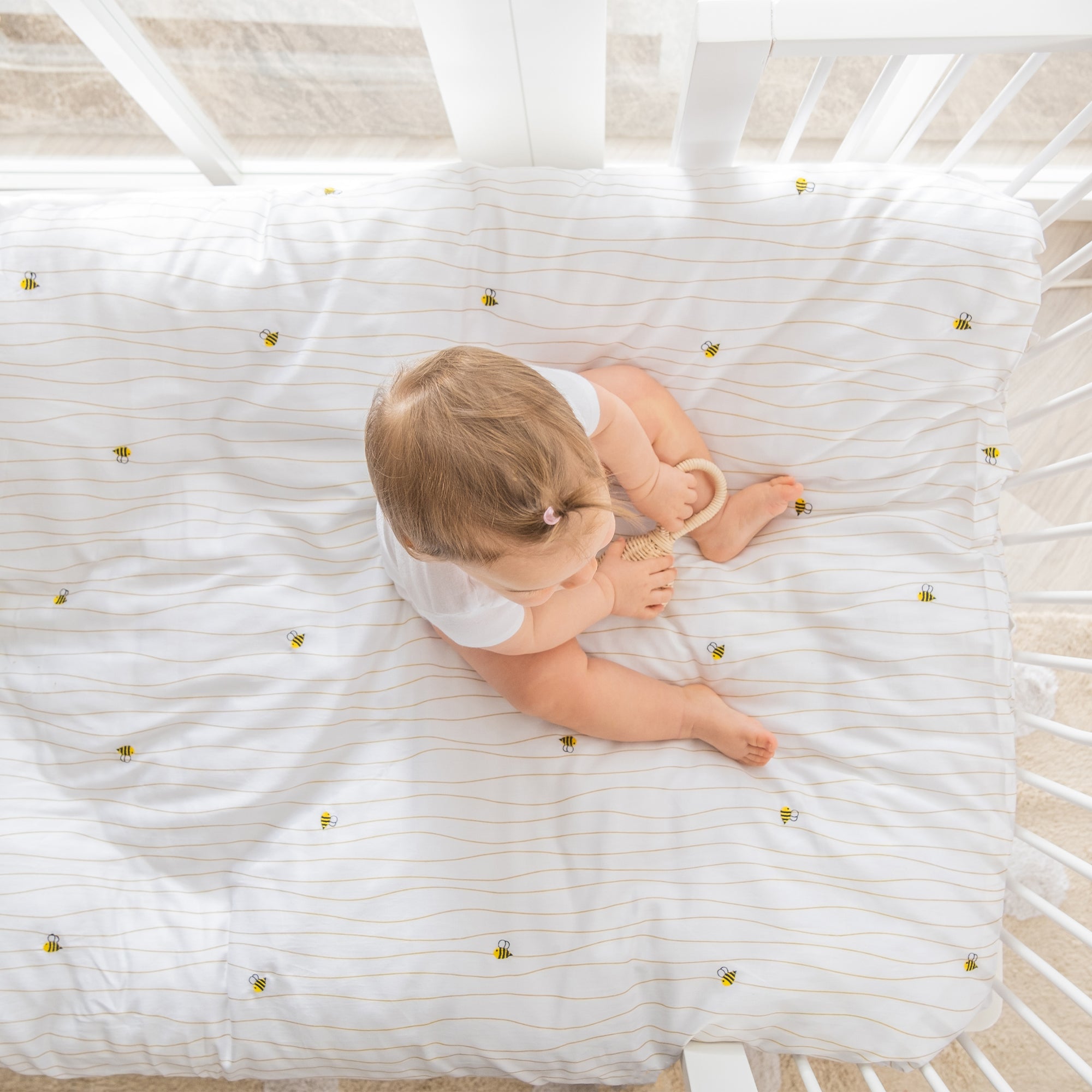 Happy Bee %100 Organik Pamuk Nakışlı Bebek Nevresim Takımı
