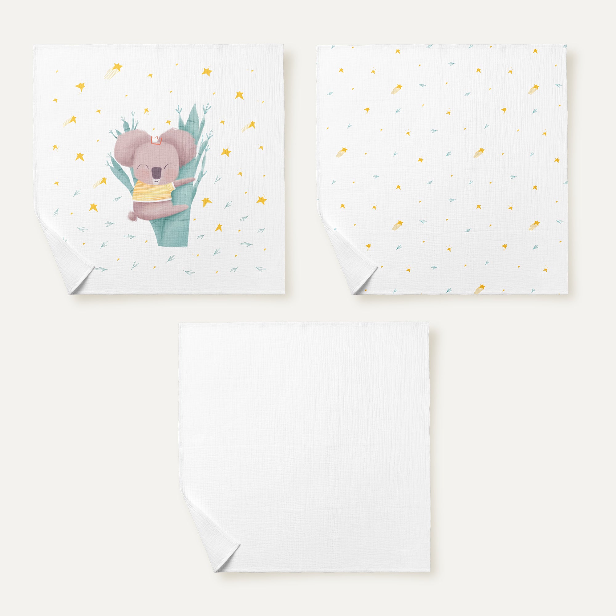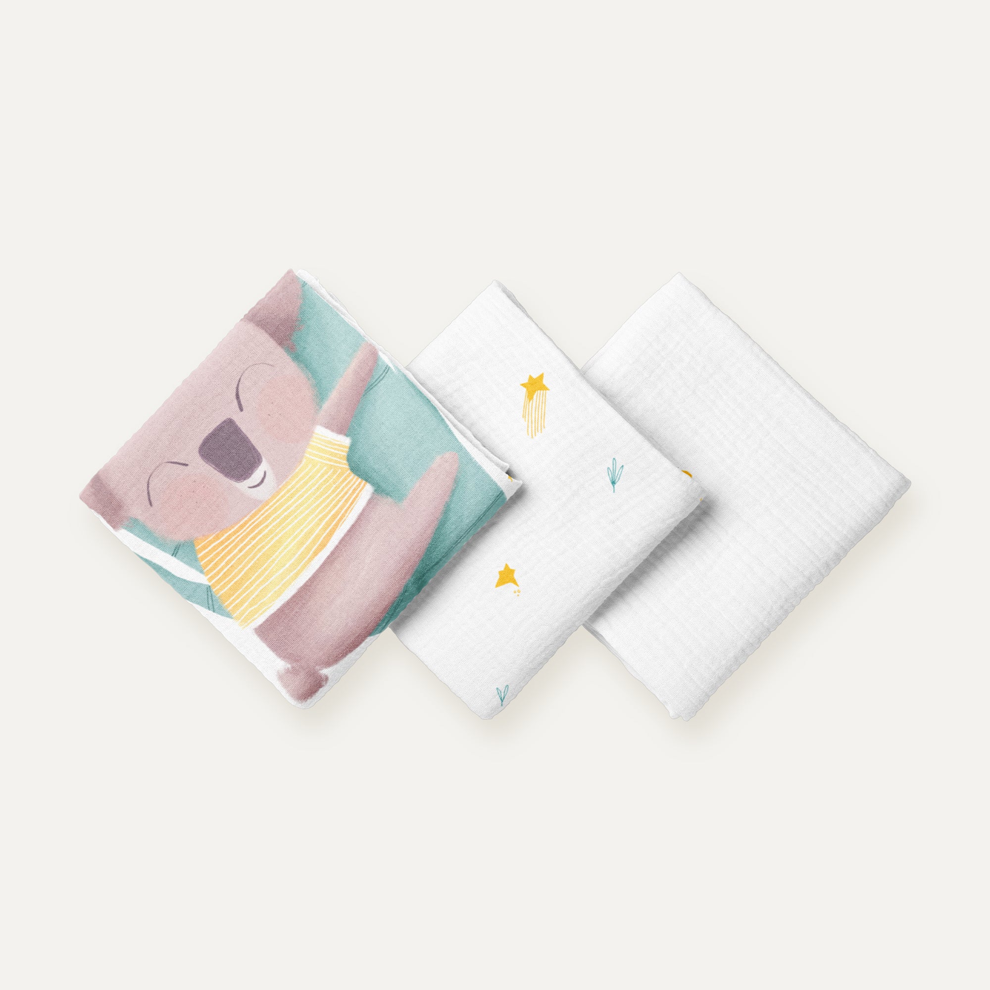 Koko %100 Organik Pamuk Yıkanmış Müslin 3'lü Örtü Seti 55 x 55 cm